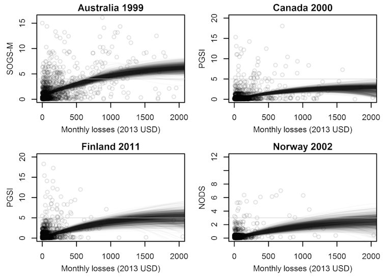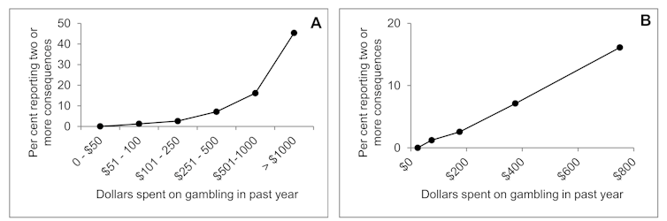 The second implication relates to the “responsible gambling” model of regulation. This model rests on the notion that gambling in moderation is safe. In contrast, our research suggests that gambling at any level can be associated with harm. And the more money lost, the greater the risk of harm.